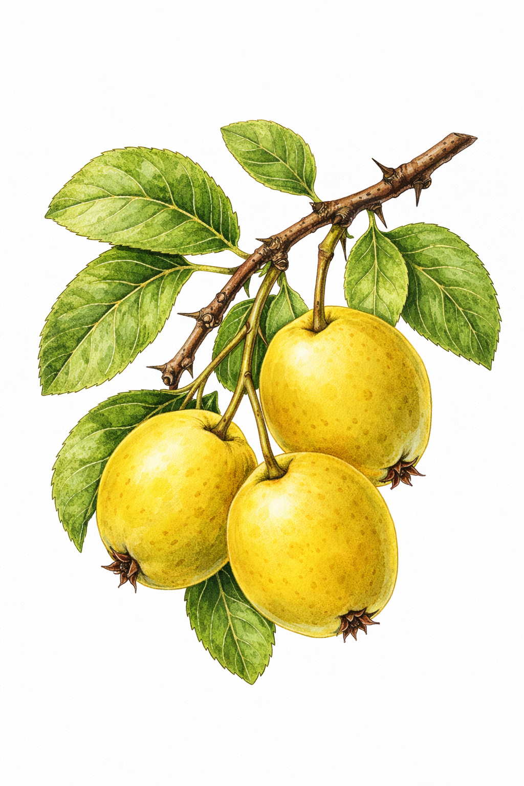 Au printemps, il se couvre d’abondantes fleurs roses à blanches, offrant un spectacle décoratif remarquable. En fin d’été et automne, il produit de fruits jaunes comestibles, riches en parfum et en saveur, parfaits pour confitures ou gelées.