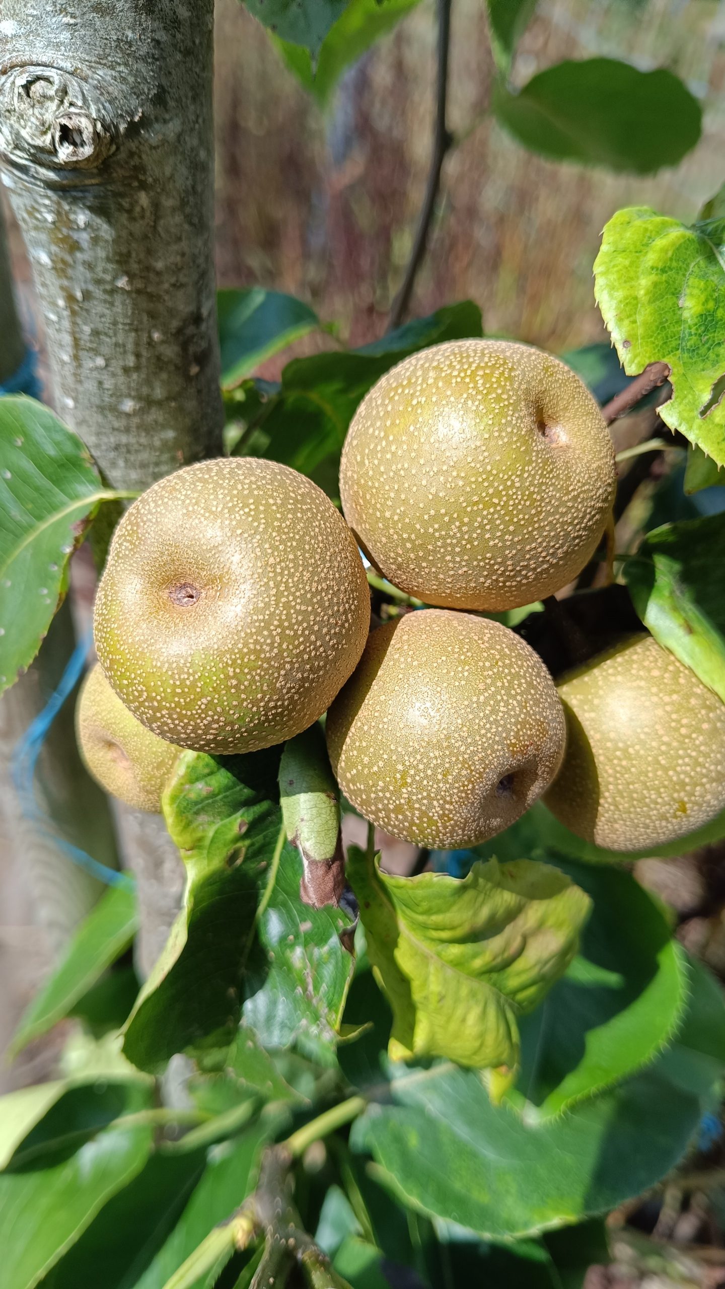 Fruit rond, peau bronzé doré avec de grandes lenticelles, arbre vigoureux et productif, maturité en août, bon calibre (200 à 250g), excellente qualité gustative, chair douce, juteuse et parfumée.
