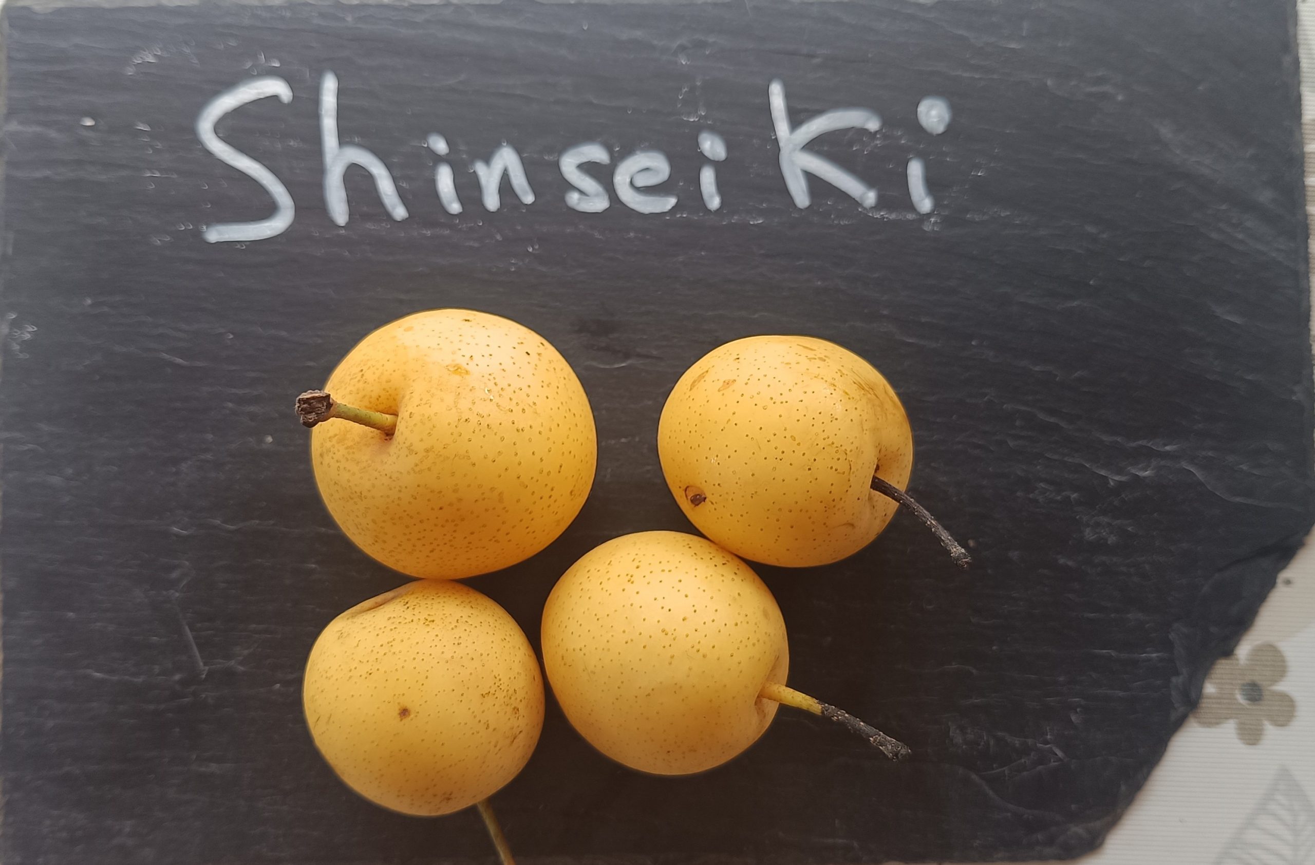 Fruit globuleux aplatie avec un épiderme vert jaune lisse, arbre de taille moyenne, maturité à la fin du mois d’août, avec un calibre assez élevé (200 à 250g).
